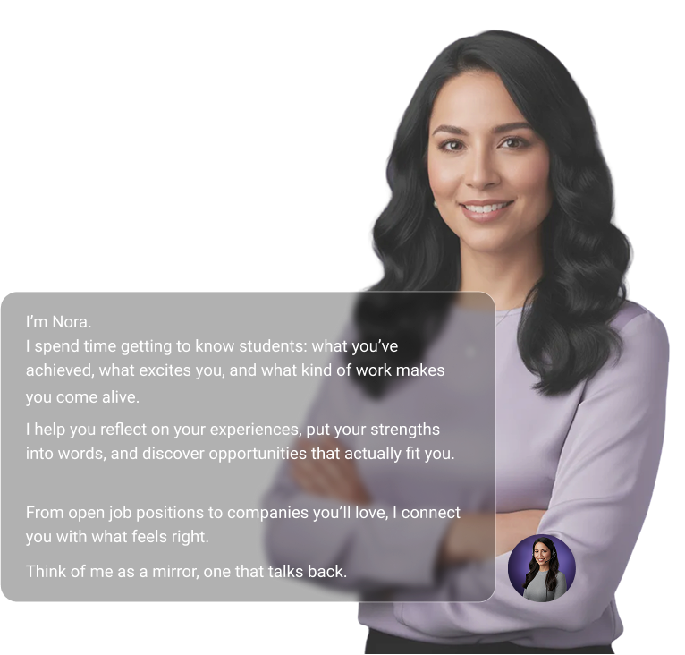 Students talk to Nora. She helps them uncover what drives them, and introduces them to opportunities they’ll actually care about.
